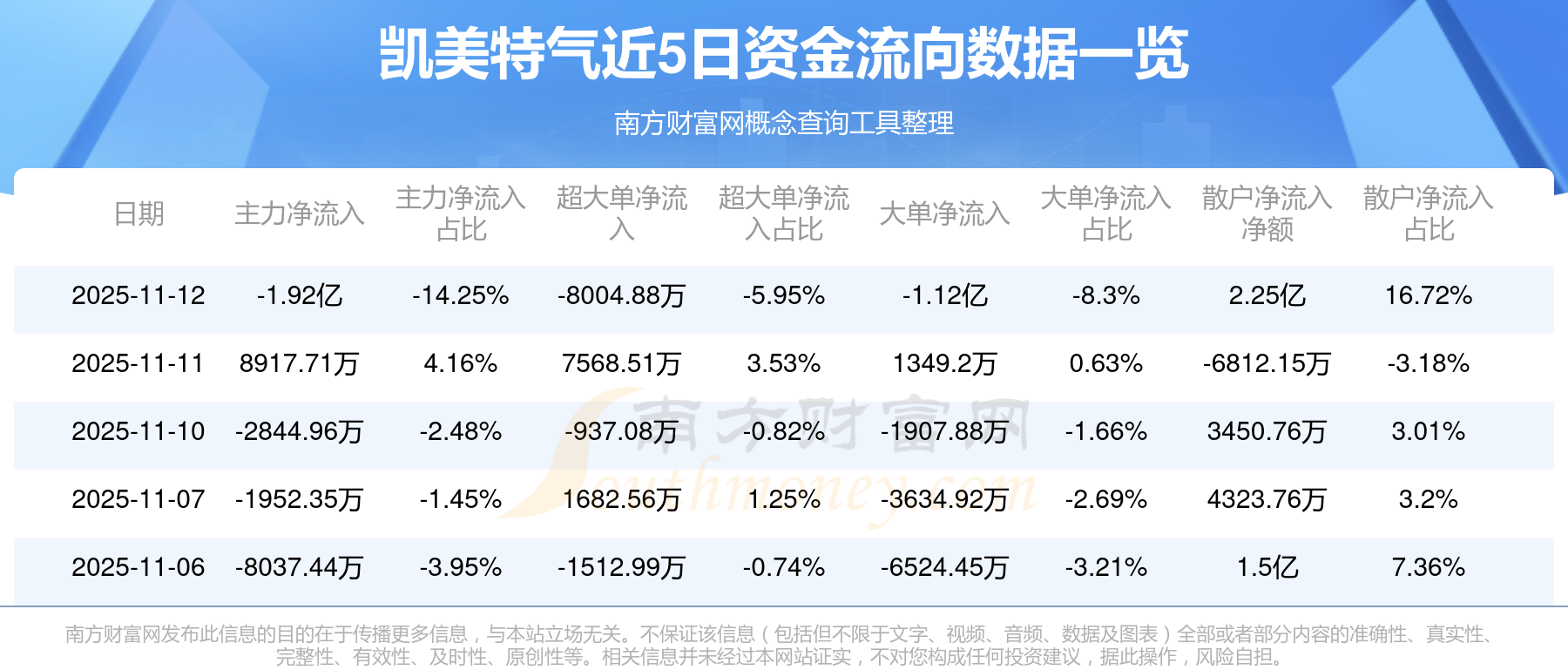 11月12日該股主力資金凈流出1.92億元,超大單資金凈流出8004.88萬(wàn)元,大單資金凈流出1.12億元,中單資金凈流出3319.79萬(wàn)元,散戶資金凈流入2.25億元。