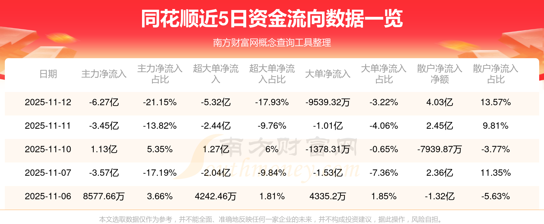 11月12日消息,同花順主力資金凈流出6.27億元,超大單資金凈流出5.32億元,散戶資金凈流入4.03億元。