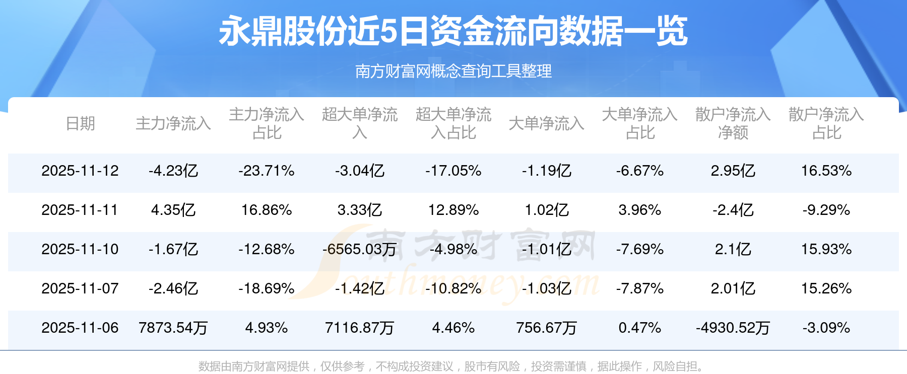 11月12日消息,永鼎股份11月12日主力凈流出4.23億元,超大單凈流出3.04億元,大單凈流出1.19億元,散戶凈流入2.95億元。