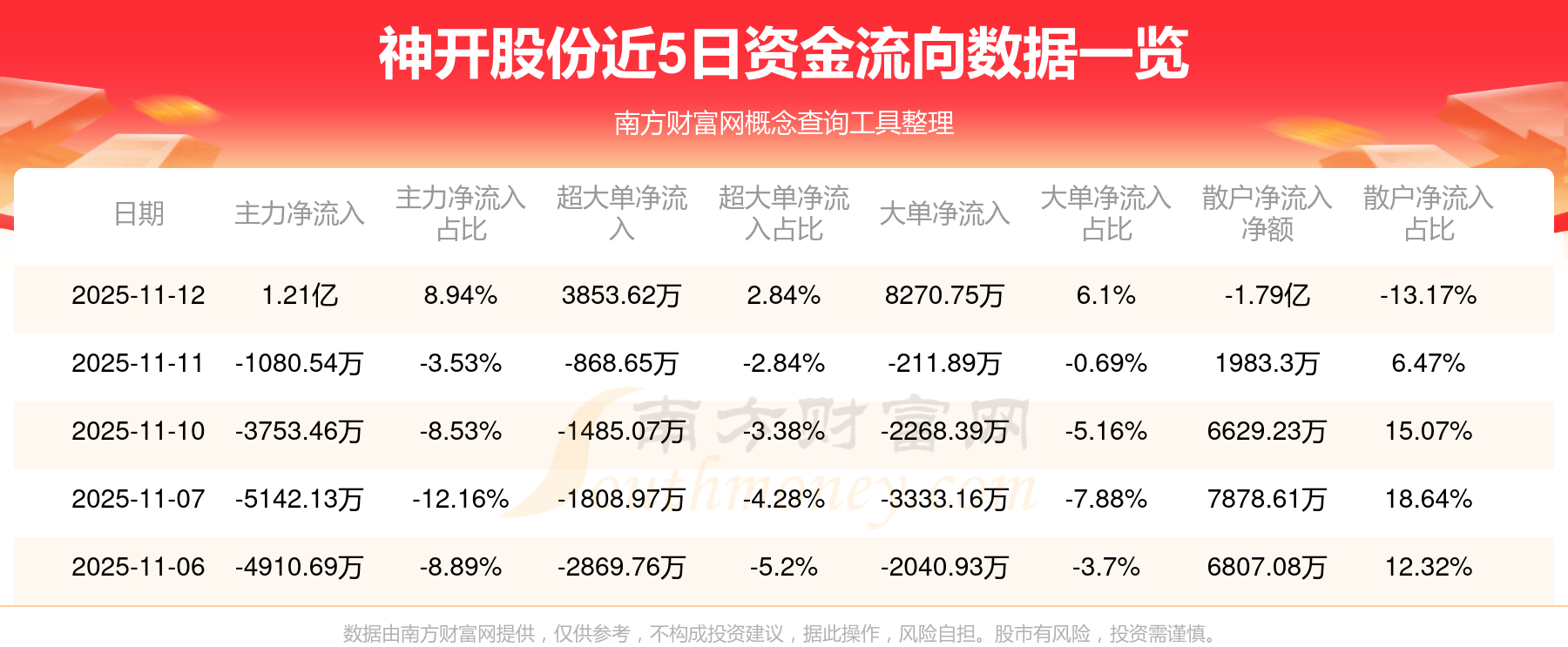 11月12日消息,神開股份11月12日主力資金凈流入1.21億元,超大單資金凈流入3853.62萬元,大單資金凈流入8270.75萬元,散戶資金凈流出1.79億元。
