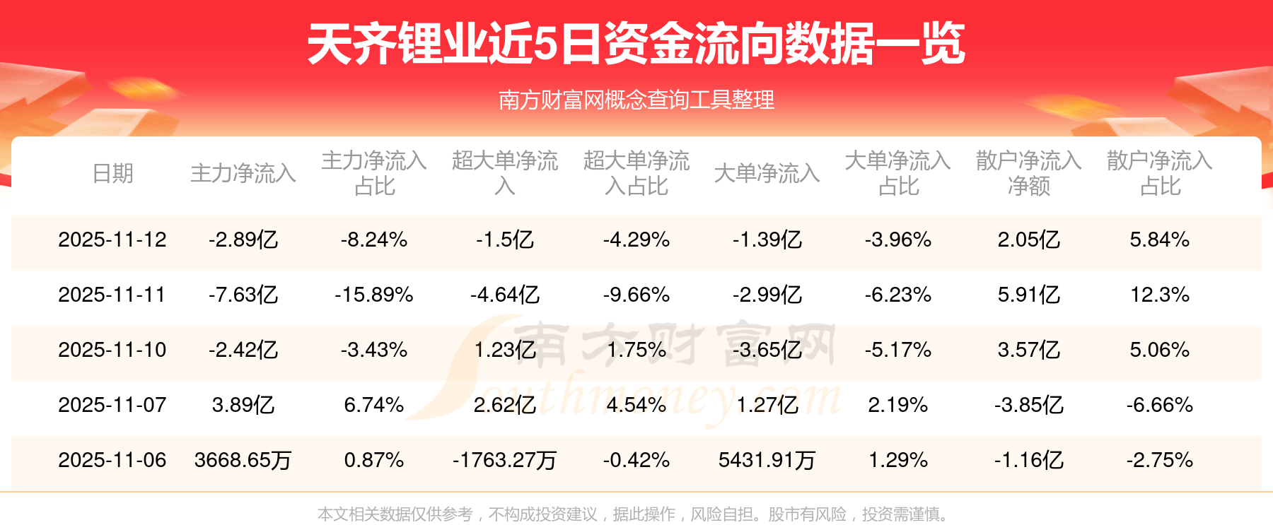 11月12日消息,天齊鋰業(yè)資金凈流出2.89億元,超大單凈流出1.5億元,換手率4.4%,成交金額35.09億元。