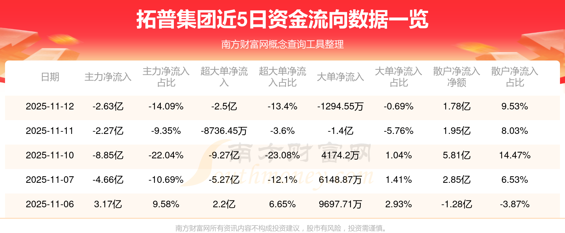 11月12日消息,拓普集團(tuán)資金凈流出2.63億元,超大單資金凈流出2.5億元,換手率1.71%,成交金額18.65億元。