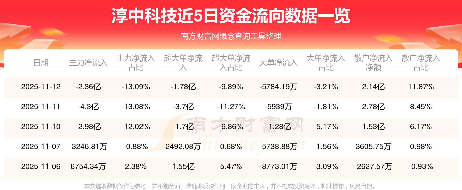 近5日資金流向一覽見下表: