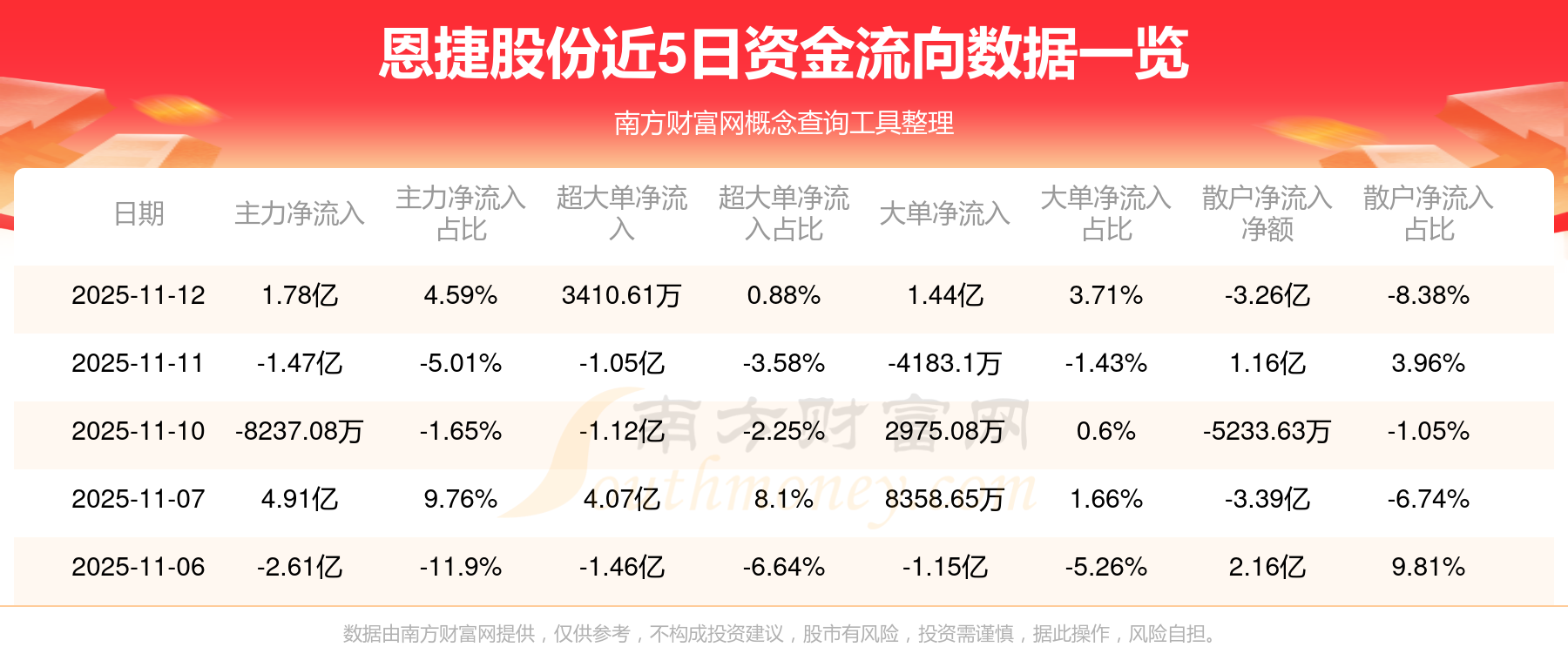 11月12日消息,恩捷股份主力凈流入1.78億元,超大單凈流入3410.61萬(wàn)元,散戶(hù)凈流出3.26億元。
