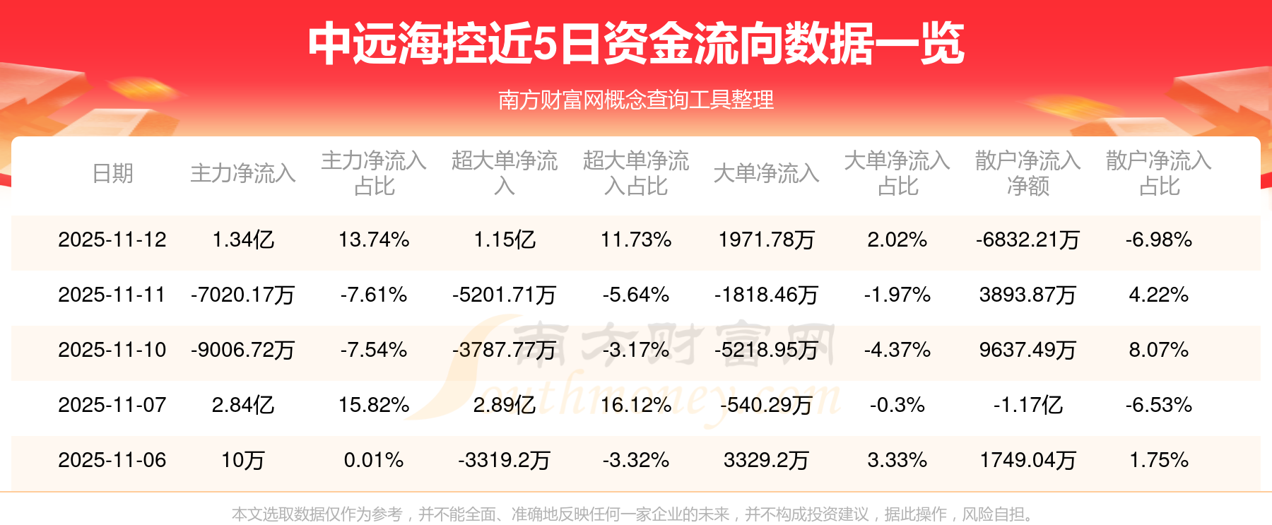 11月12日主力資金凈流入1.34億元,超大單資金凈流入1.15億元,換手率0.5%,成交金額9.78億元。