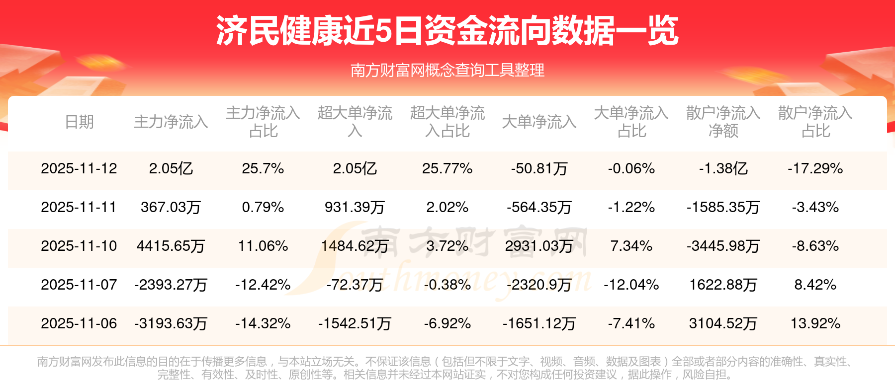 11月12日消息,資金凈流入2.05億元,超大單資金凈流入2.05億元,成交金額7.97億元。