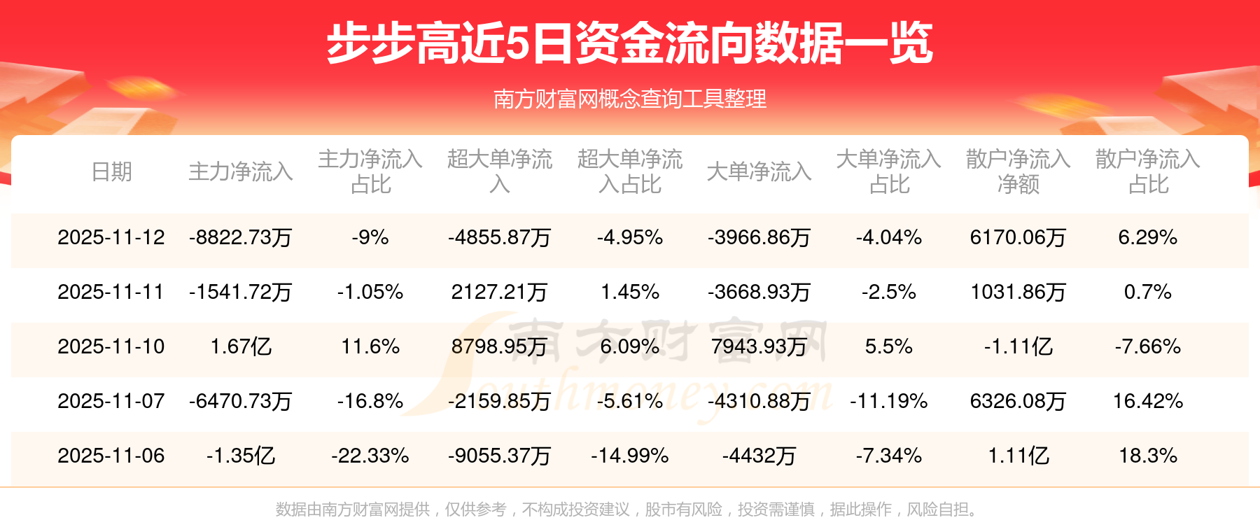 11月12日消息,步步高11月12日主力資金凈流出8822.73萬元,超大單資金凈流出4855.87萬元,大單資金凈流出3966.86萬元,散戶資金凈流入6170.06萬元。