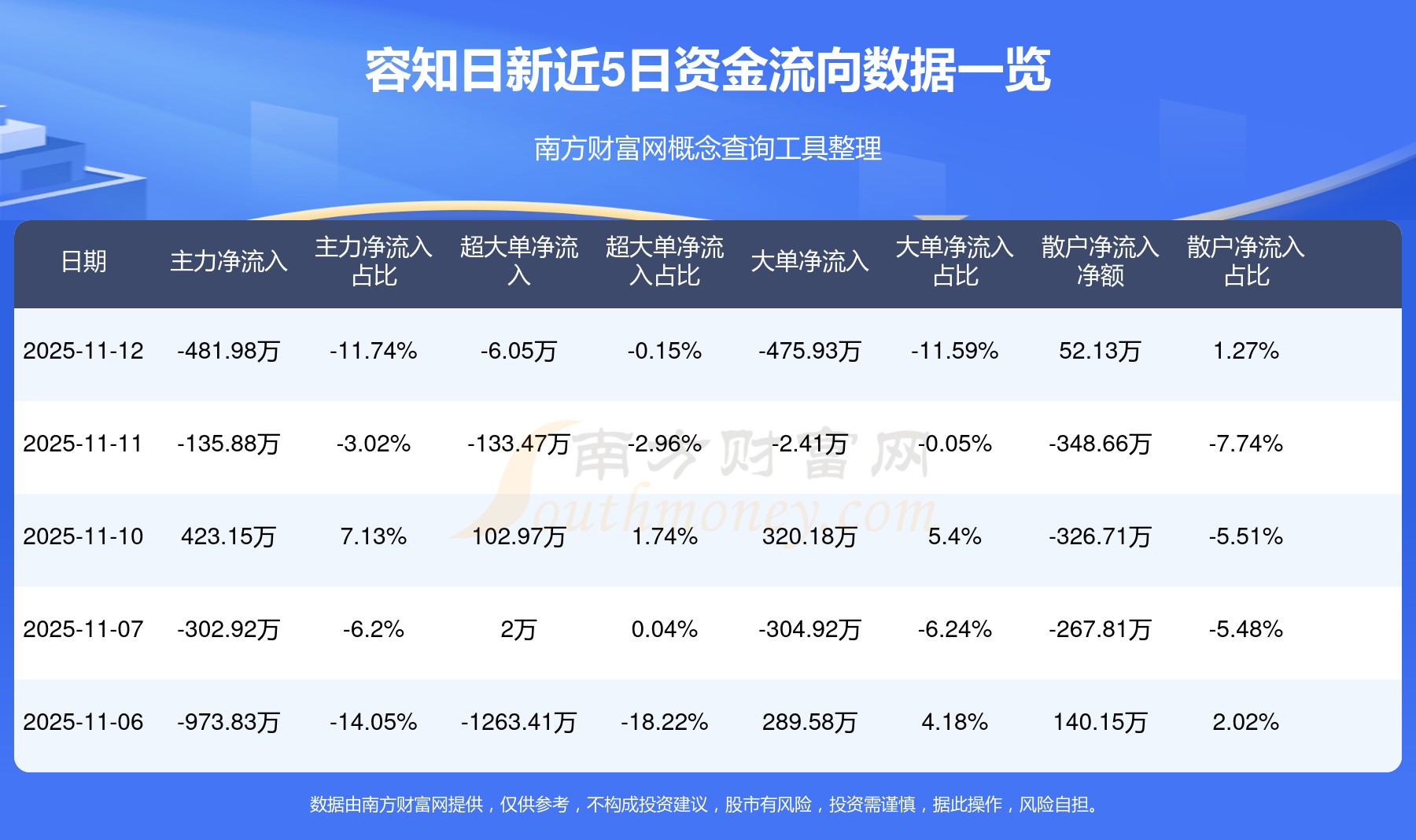 11月12日該股主力資金凈流出481.98萬元,超大單資金凈流出6.05萬元,大單資金凈流出475.93萬元,中單資金凈流入429.85萬元,散戶資金凈流入52.13萬元。