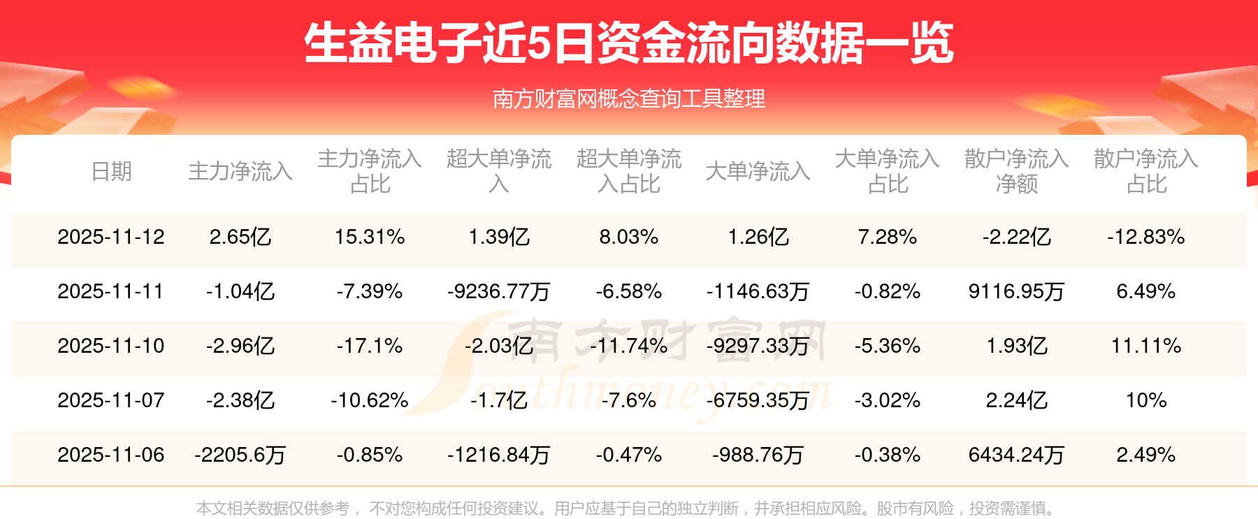 資金流向數(shù)據(jù)方面,11月12日主力資金凈流流入2.65億元,超大單資金凈流入1.39億元,大單資金凈流入1.26億元,散戶資金凈流出2.22億元。