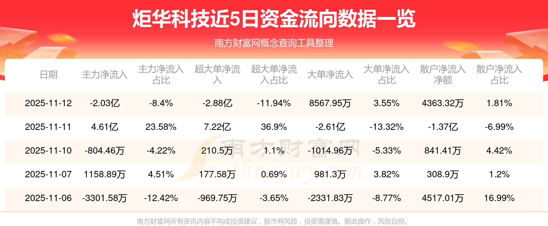 11月12日消息,炬華科技11月12日主力資金凈流出2.03億元,超大單資金凈流出2.88億元,大單資金凈流入8567.95萬元,散戶資金凈流入4363.32萬元。