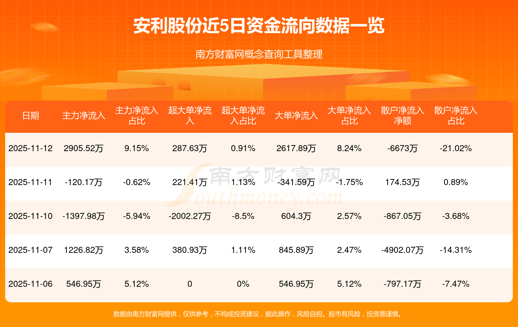 11月12日消息,安利股份主力資金凈流入2905.52萬元,超大單資金凈流入287.63萬元,散戶資金凈流出6673萬元。