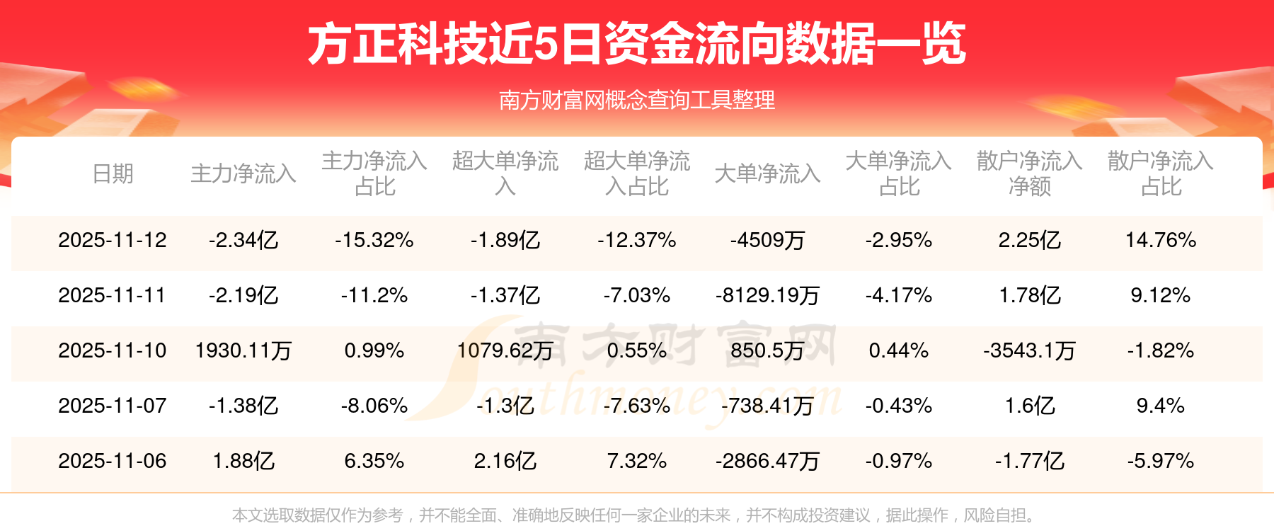 11月12日消息,方正科技主力資金凈流出2.34億元,超大單資金凈流出1.89億元,散戶資金凈流入2.25億元。