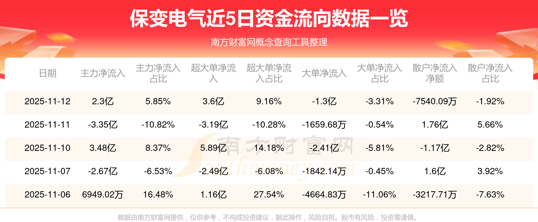 近5日資金流向一覽見下表: