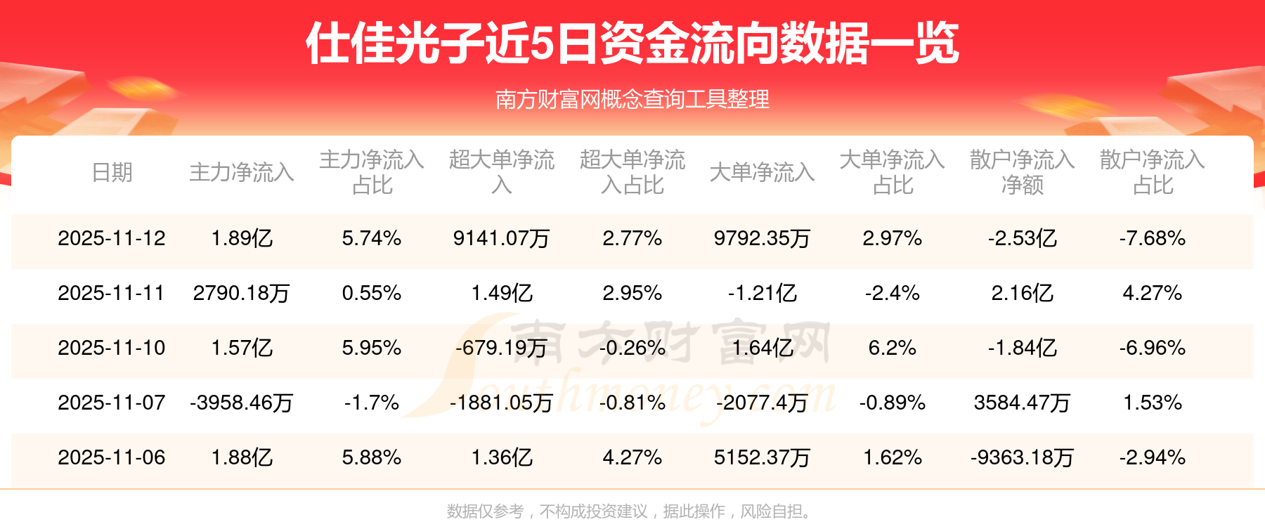 11月12日消息,仕佳光子11月12日主力資金凈流入1.89億元,超大單資金凈流入9141.07萬元,大單資金凈流入9792.35萬元,散戶資金凈流出2.53億元。