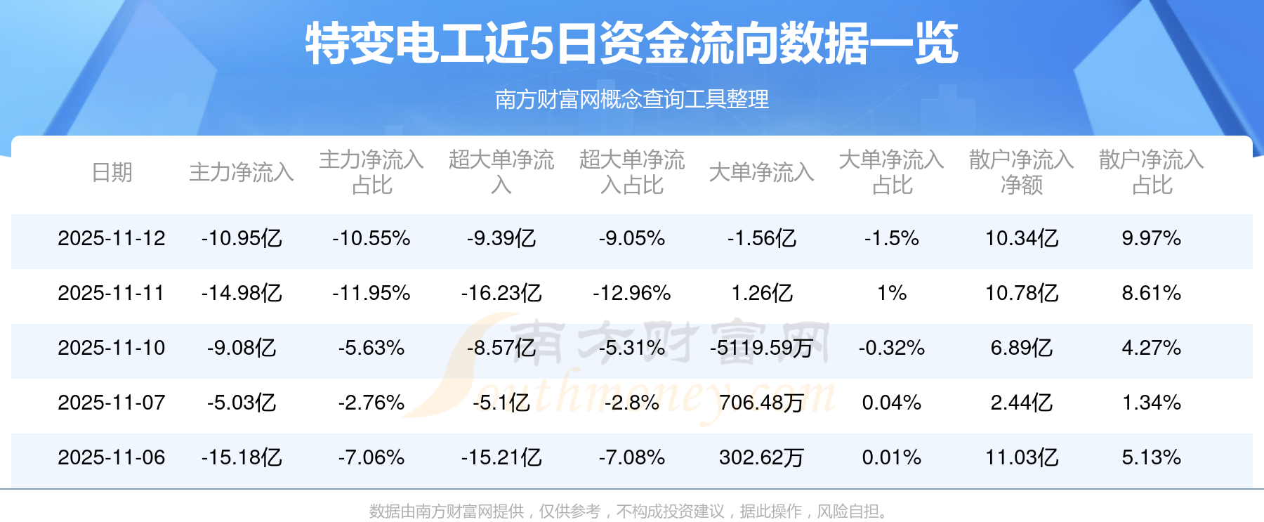 資金流向數(shù)據(jù)方面,11月12日主力資金凈流流出10.95億元,超大單資金凈流出9.39億元,大單資金凈流出1.56億元,散戶(hù)資金凈流入10.34億元。