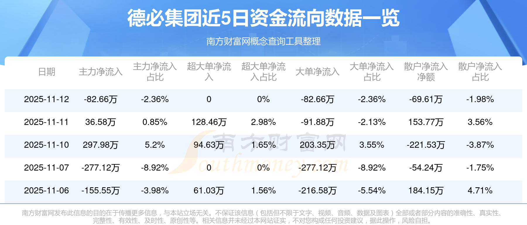 11月12日消息,德必集團(tuán)11月12日主力凈流出82.66萬元,大單凈流出82.66萬元,散戶凈流出69.61萬元。