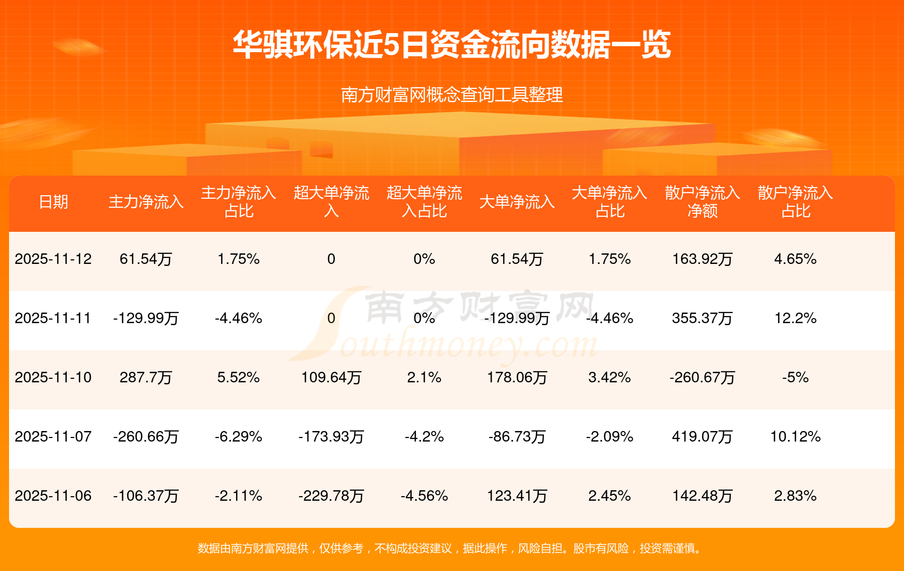 11月12日該股主力凈流入61.54萬(wàn)元,大單凈流入61.54萬(wàn)元,中單凈流出225.46萬(wàn)元,散戶凈流入163.92萬(wàn)元。