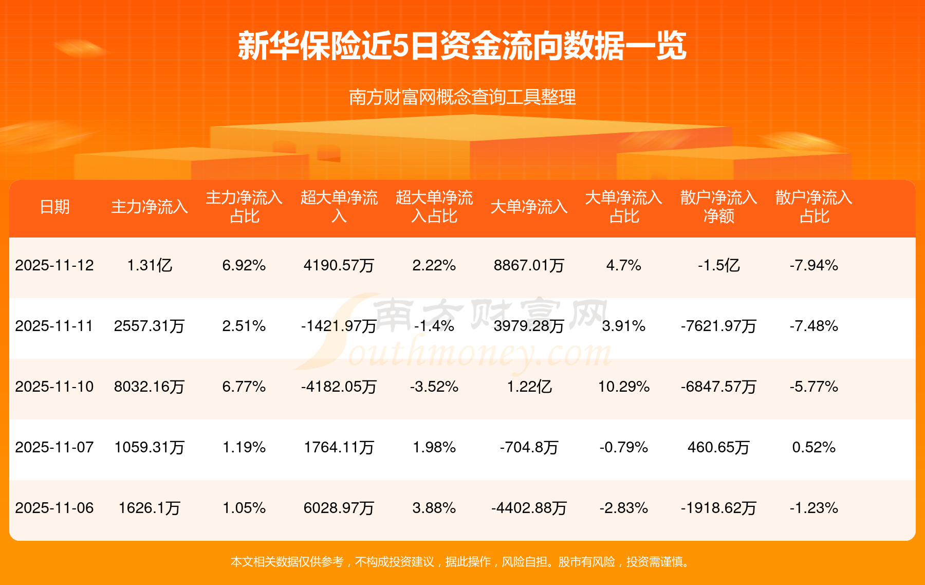 11月12日消息,新華保險資金凈流入1.31億元,超大單資金凈流入4190.57萬元,換手率0.18%,成交金額2.53億元。