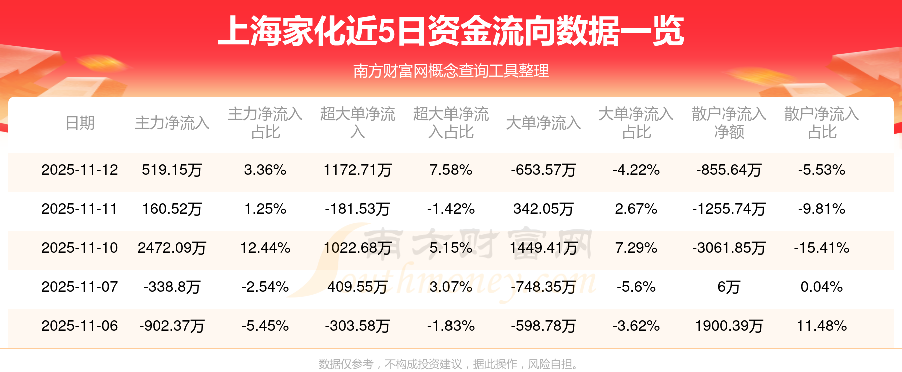 11月12日消息,上海家化資金凈流入519.15萬元,超大單凈流入1172.71萬元,換手率0.34%,成交金額5478.26萬元。