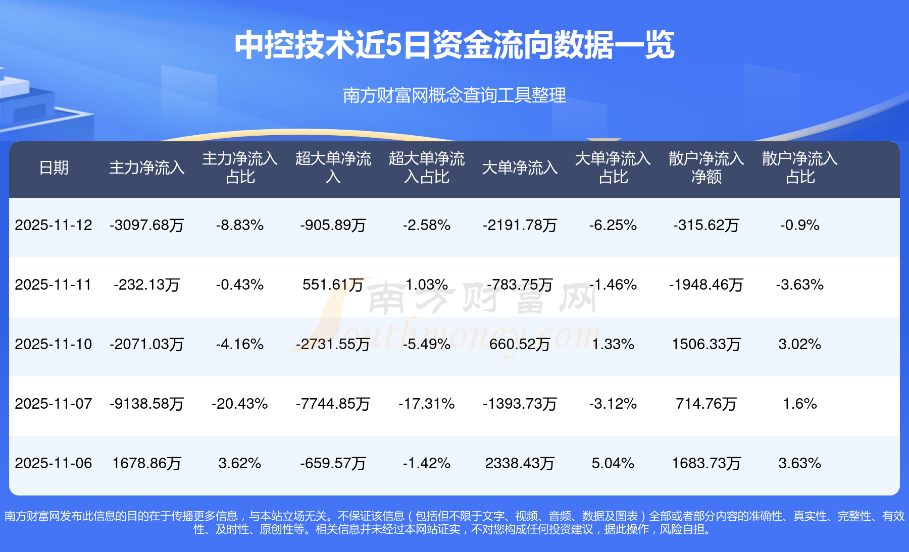 11月12日該股主力凈入-3097.68萬元,其中資金流入方面:超大單凈入2364.18萬元,大單凈入8105.78萬元,中單凈入1.69億元,散戶凈入7088.28萬元;資金流出方面:超大單凈出3270.07萬元,大單凈出1.03億元,中單凈出1.35億元,散戶凈出7403.9萬元。