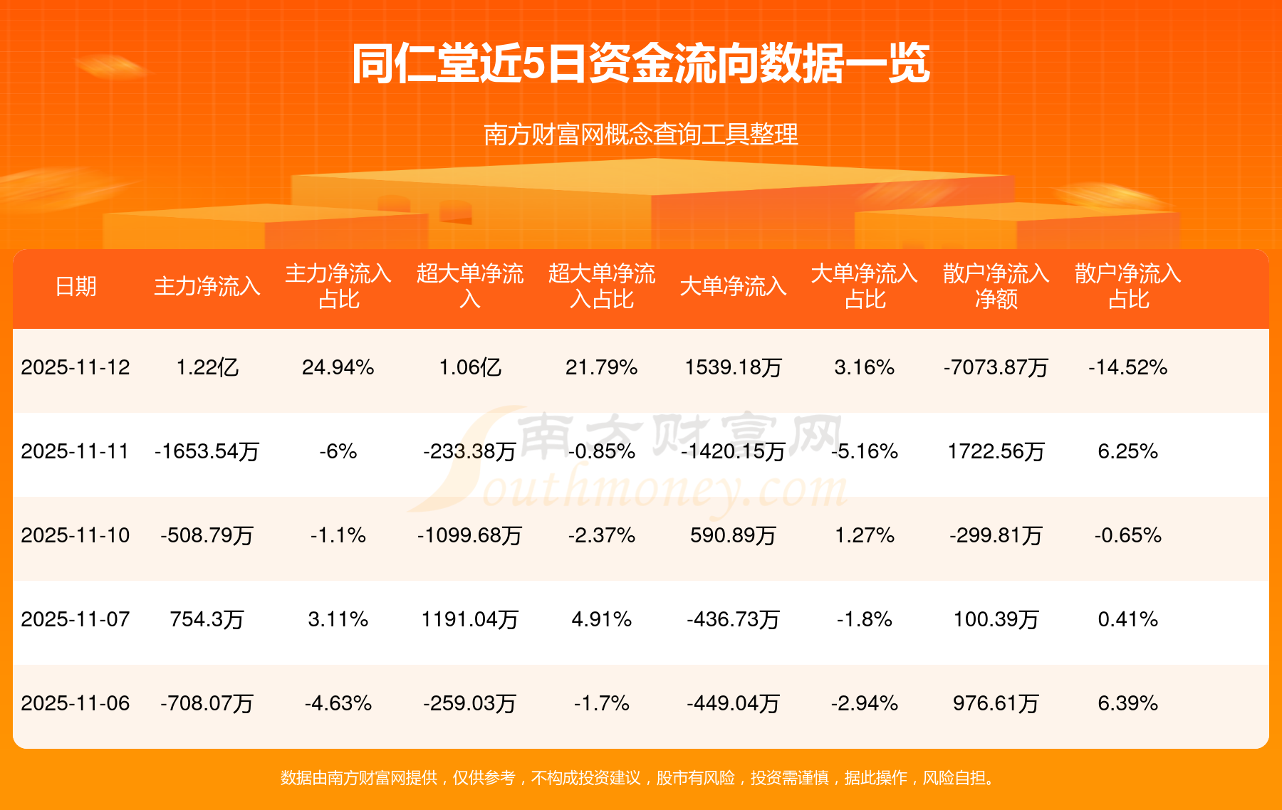 11月12日該股主力凈流入1.22億元,超大單凈流入1.06億元,大單凈流入1539.18萬元,中單凈流出5081.7萬元,散戶凈流出7073.87萬元。