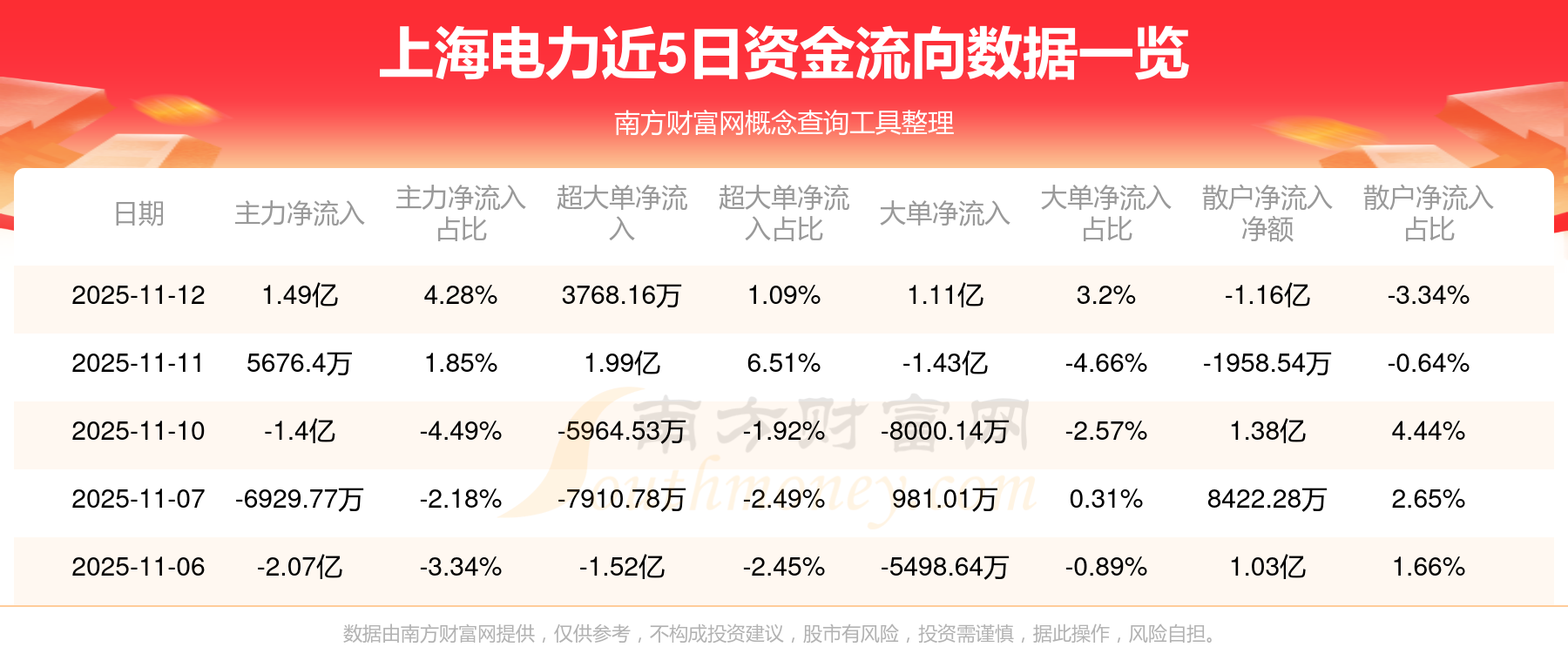 11月12日消息,上海電力資金凈流入1.49億元,超大單資金凈流入3768.16萬元,換手率1.99%,成交金額16.32億元。