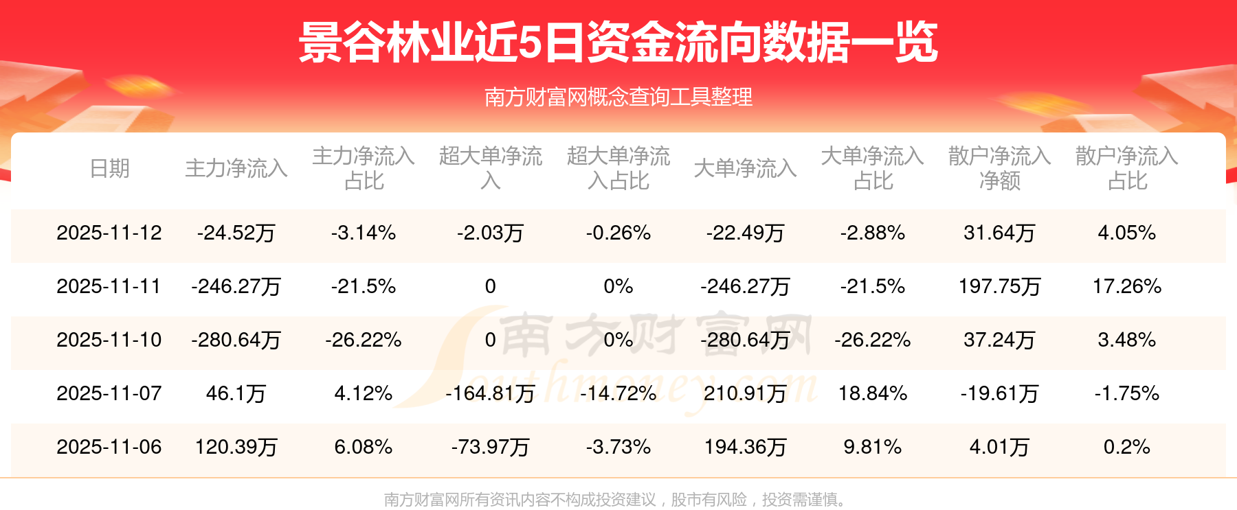 近5日資金流向一覽見下表:
