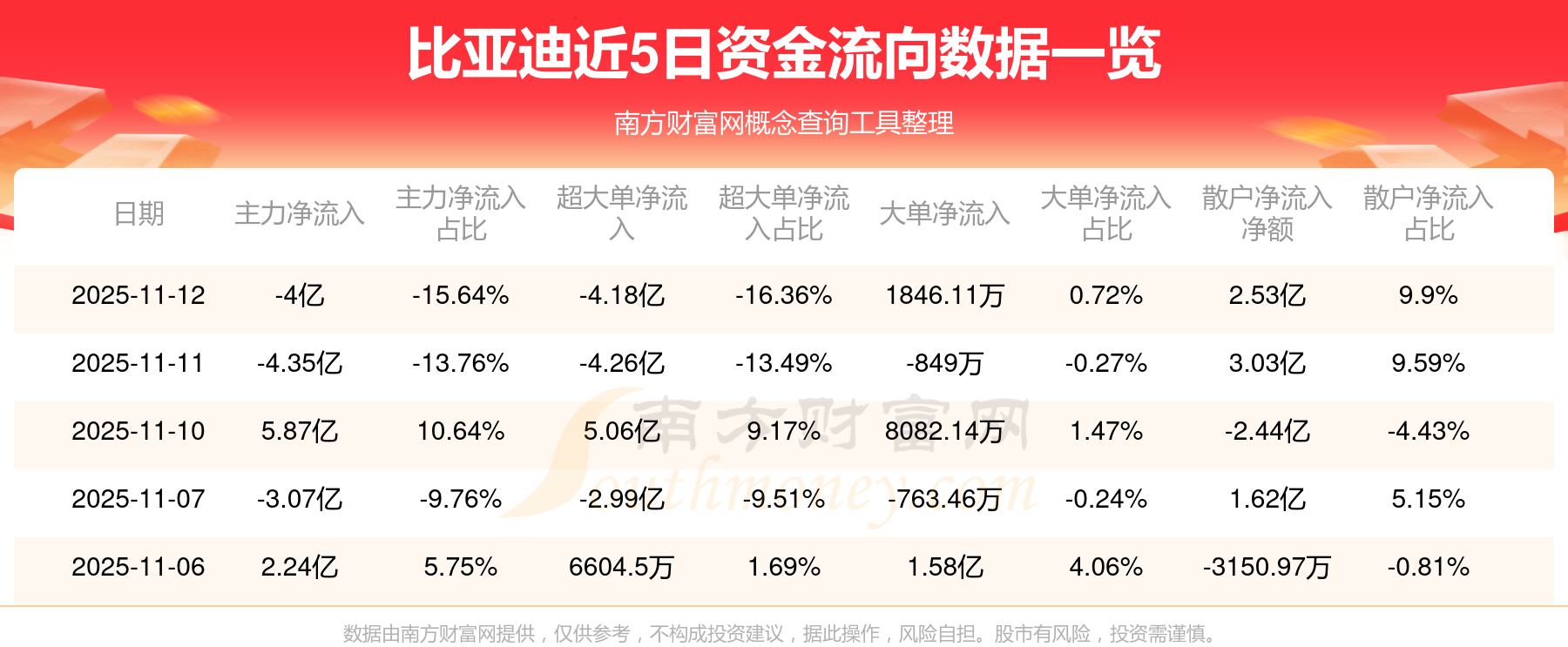 11月12日消息,比亞迪資金凈流出4億元,超大單資金凈流出4.18億元,換手率0.85%,成交金額29.11億元。