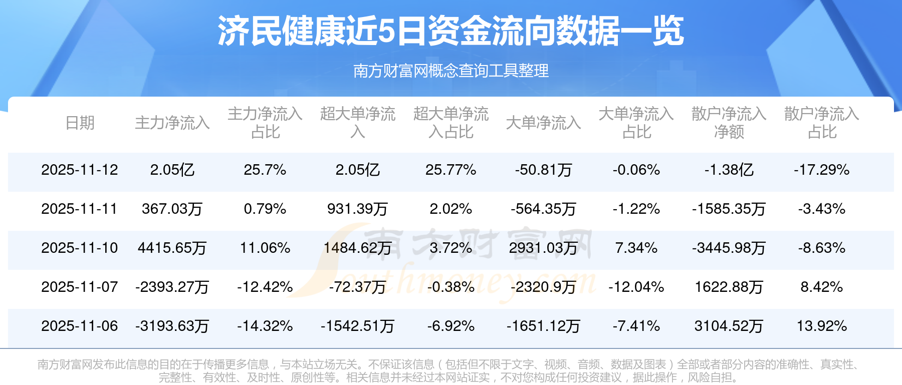 資金流向數(shù)據(jù)方面,11月12日主力資金凈流流入2.05億元,超大單資金凈流入2.05億元,大單資金凈流出50.81萬元,散戶資金凈流出1.38億元。