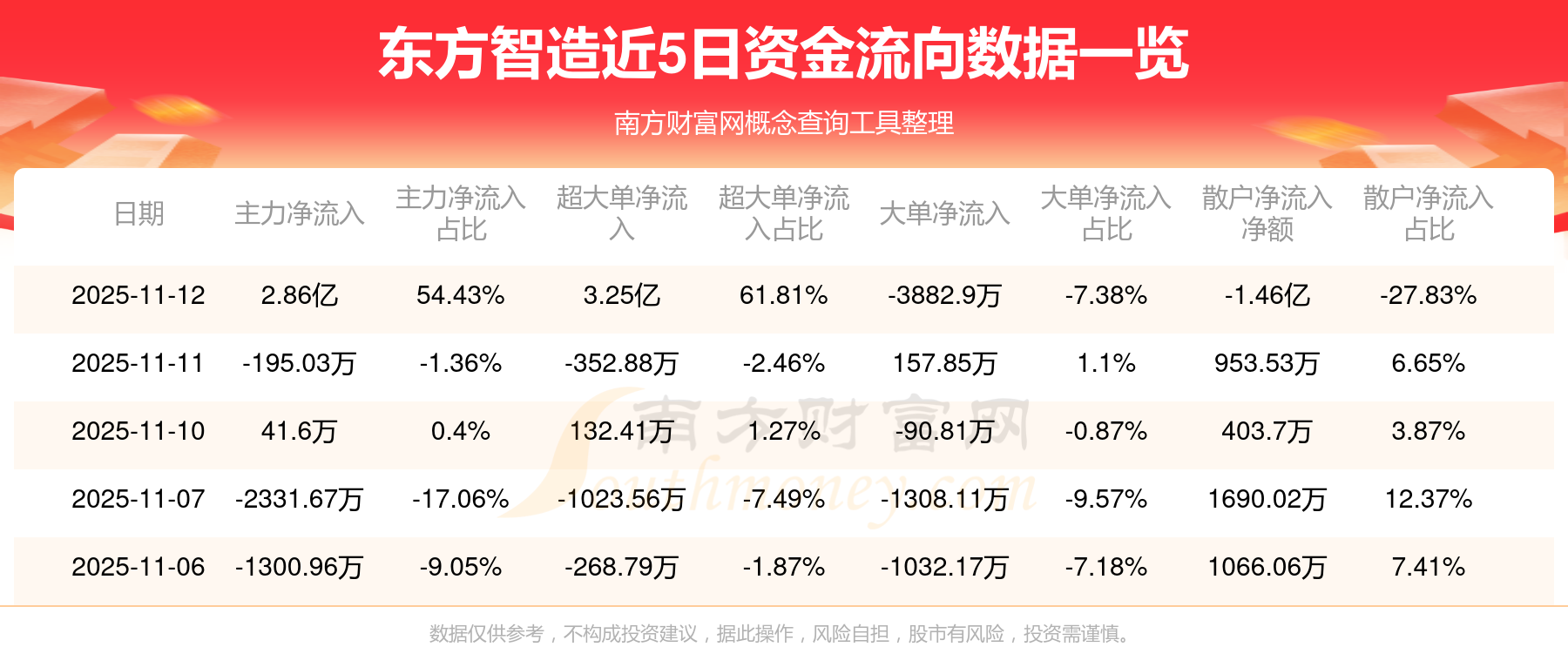 11月12日該股主力凈流入2.86億元,超大單凈流入3.25億元,大單凈流出3882.9萬(wàn)元,中單凈流出1.4億元,散戶凈流出1.46億元。