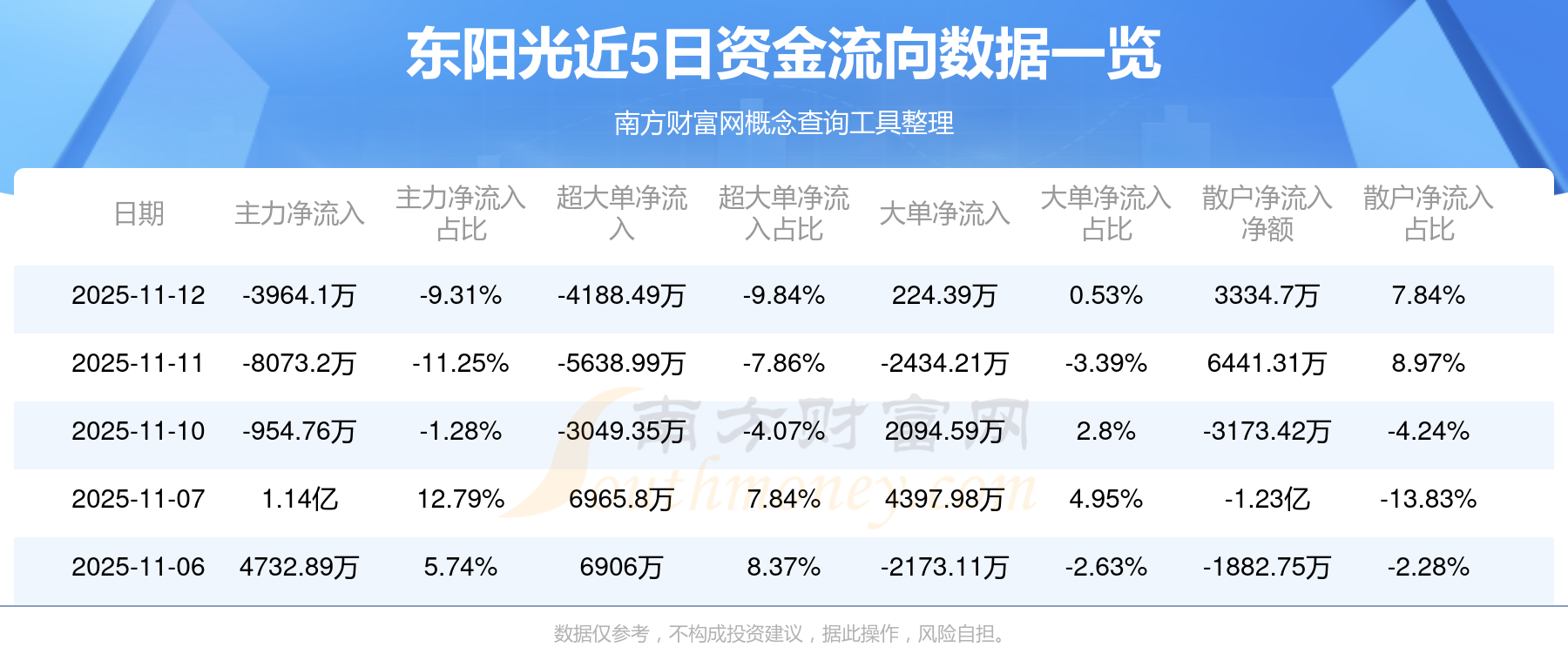 11月12日消息,東陽光主力凈流出3964.1萬元,超大單凈流出4188.49萬元,散戶凈流入3334.7萬元。