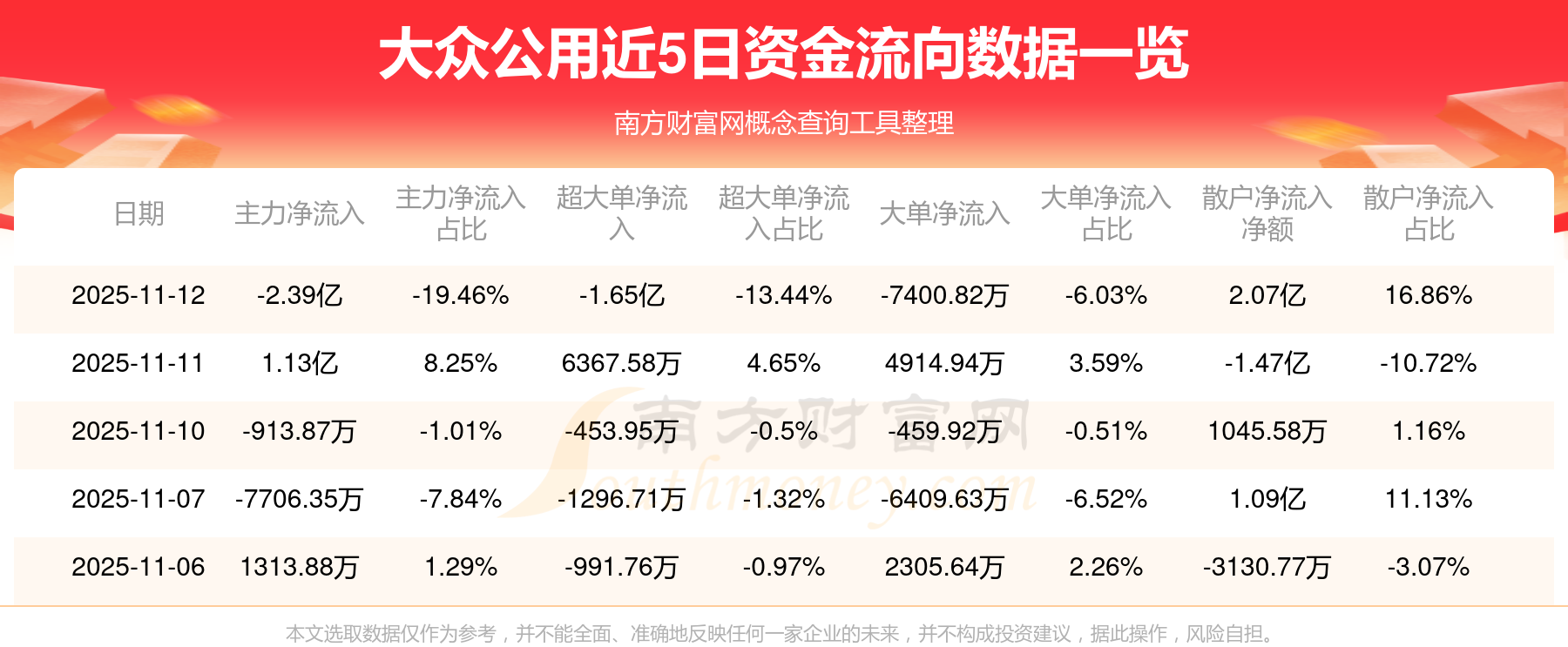 11月12日消息,大眾公用11月12日主力凈流出2.39億元,超大單凈流出1.65億元,大單凈流出7400.82萬(wàn)元,散戶凈流入2.07億元。