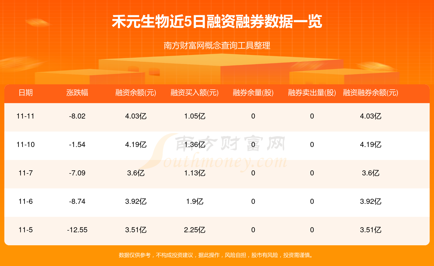 11月11日禾元生物融券信息顯示,融資方面,當(dāng)日融資買入1.05億元,融資償還1.21億元,融資凈買額-1680.7萬(wàn)元。近5日融資融券數(shù)據(jù)一覽見下表: