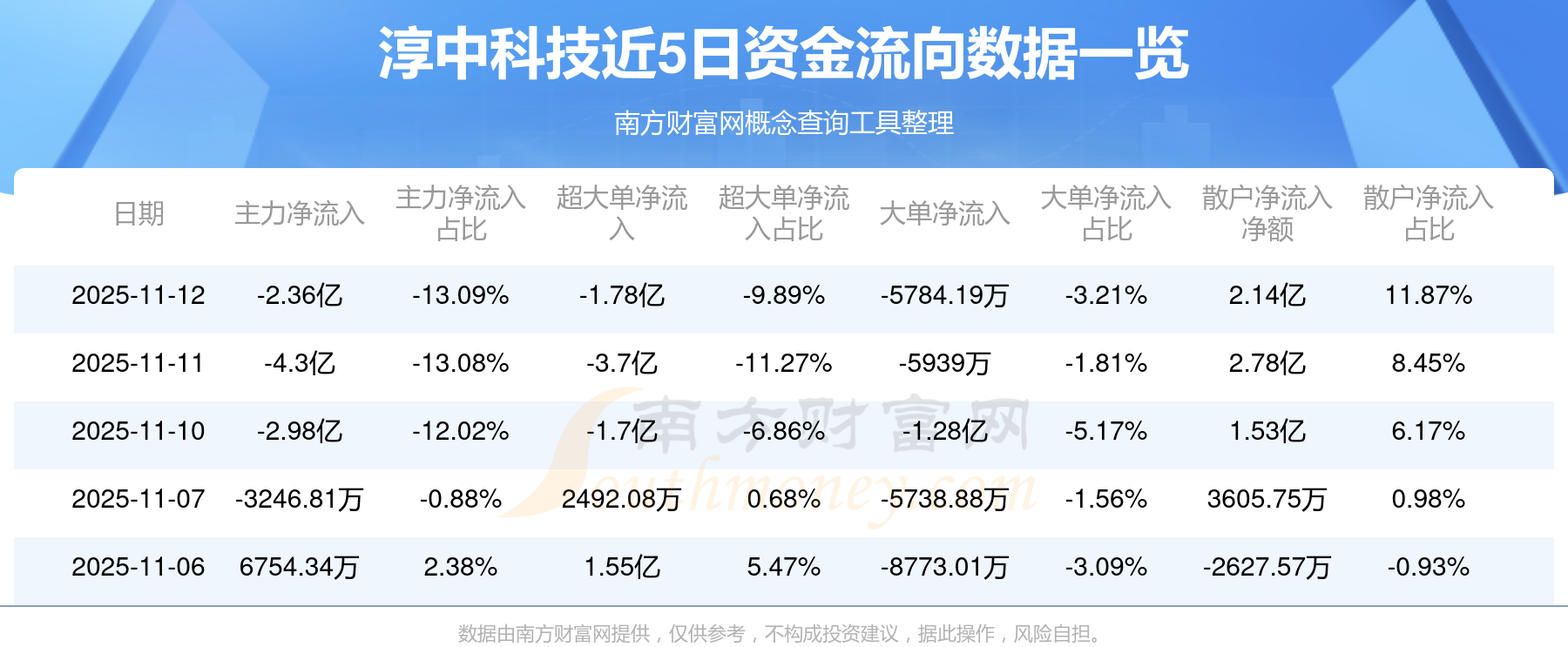 11月12日消息,淳中科技資金凈流出2.36億元,超大單資金凈流出1.78億元,換手率3.63%,成交金額14.74億元。