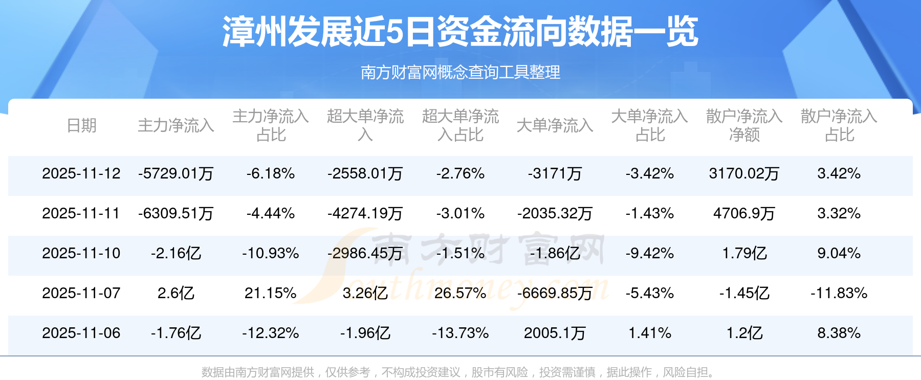 11月12日消息,漳州發(fā)展11月12日主力凈流出5729.01萬(wàn)元,超大單凈流出2558.01萬(wàn)元,大單凈流出3171萬(wàn)元,散戶凈流入3170.02萬(wàn)元。