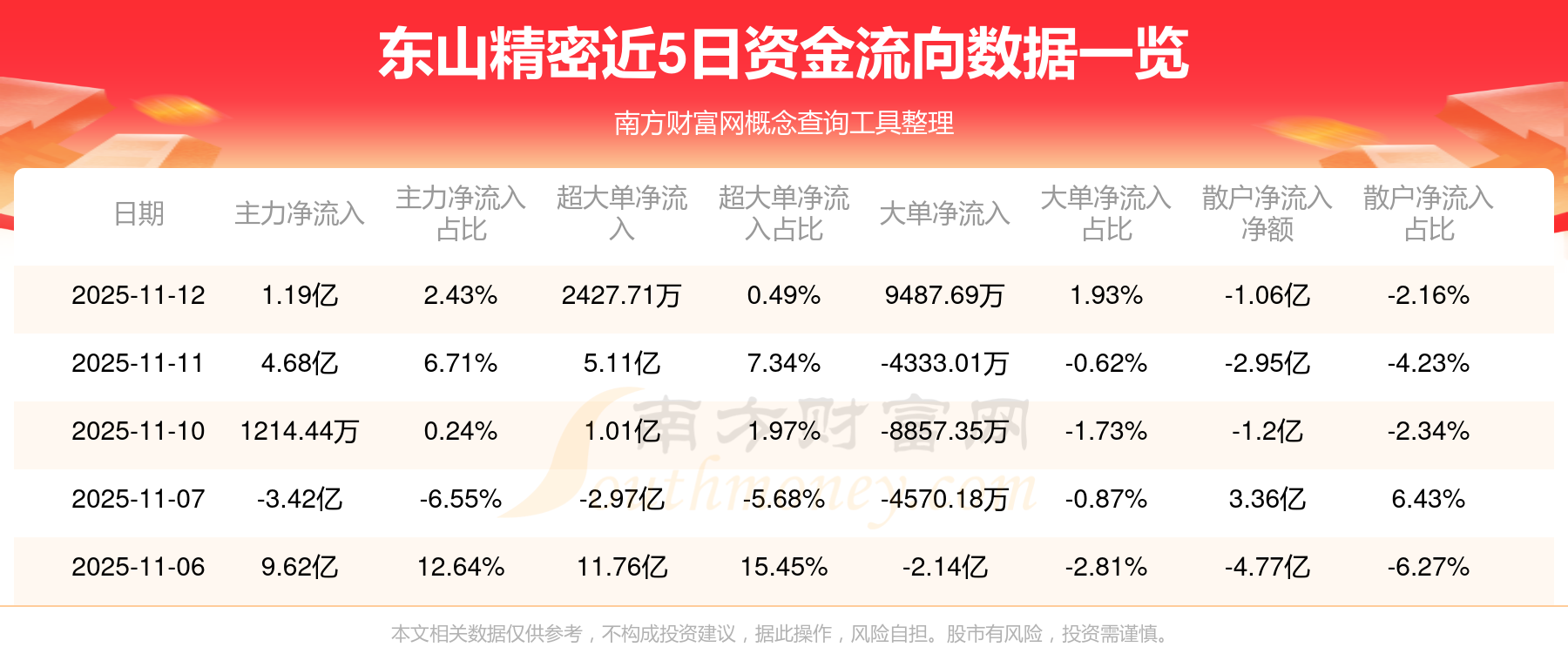近5日資金流向一覽見下表: