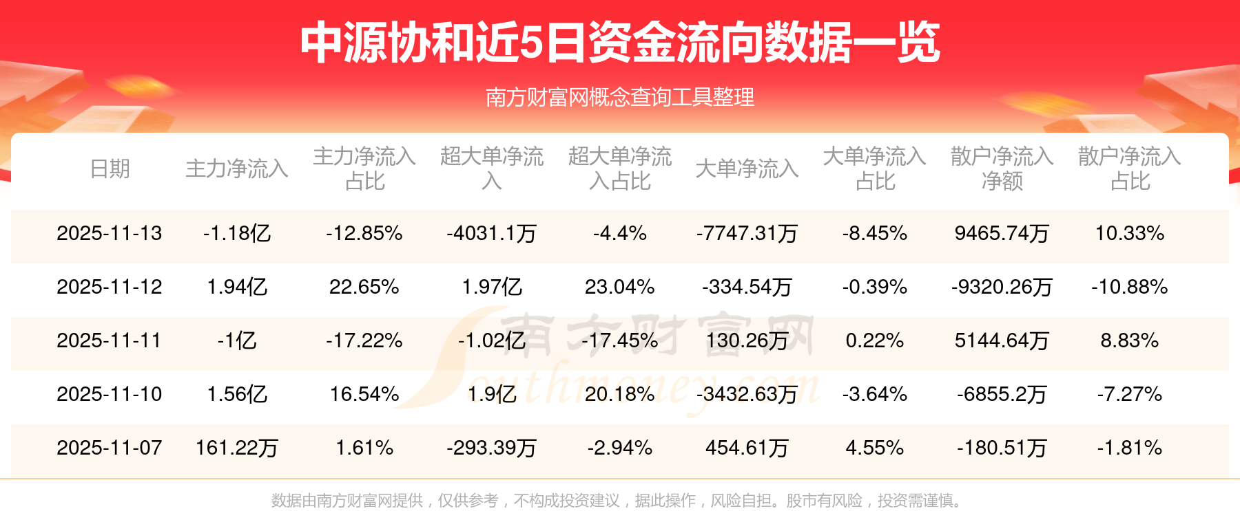 11月13日消息,中源協(xié)和11月13日主力資金凈流出1.18億元,超大單資金凈流出4031.1萬元,大單資金凈流出7747.31萬元,散戶資金凈流入9465.74萬元。