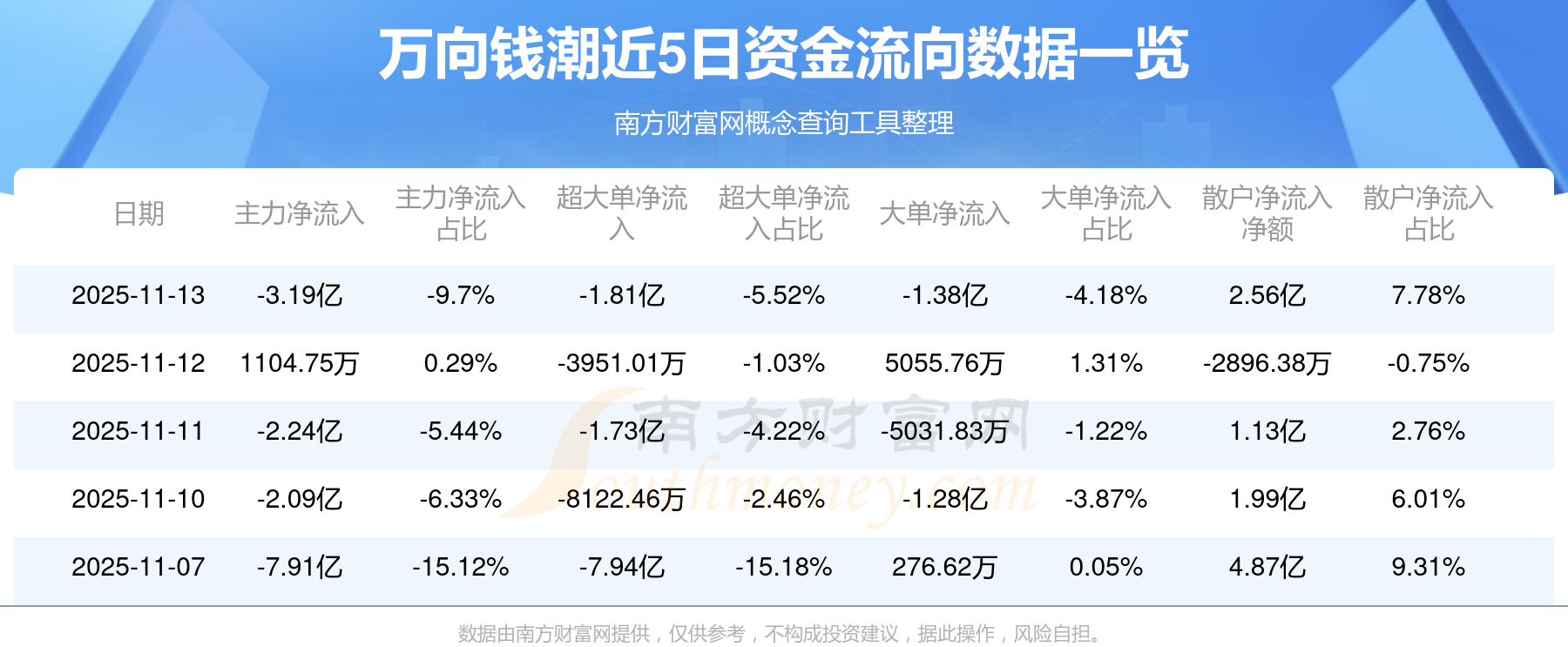 近5日資金流向一覽見下表: