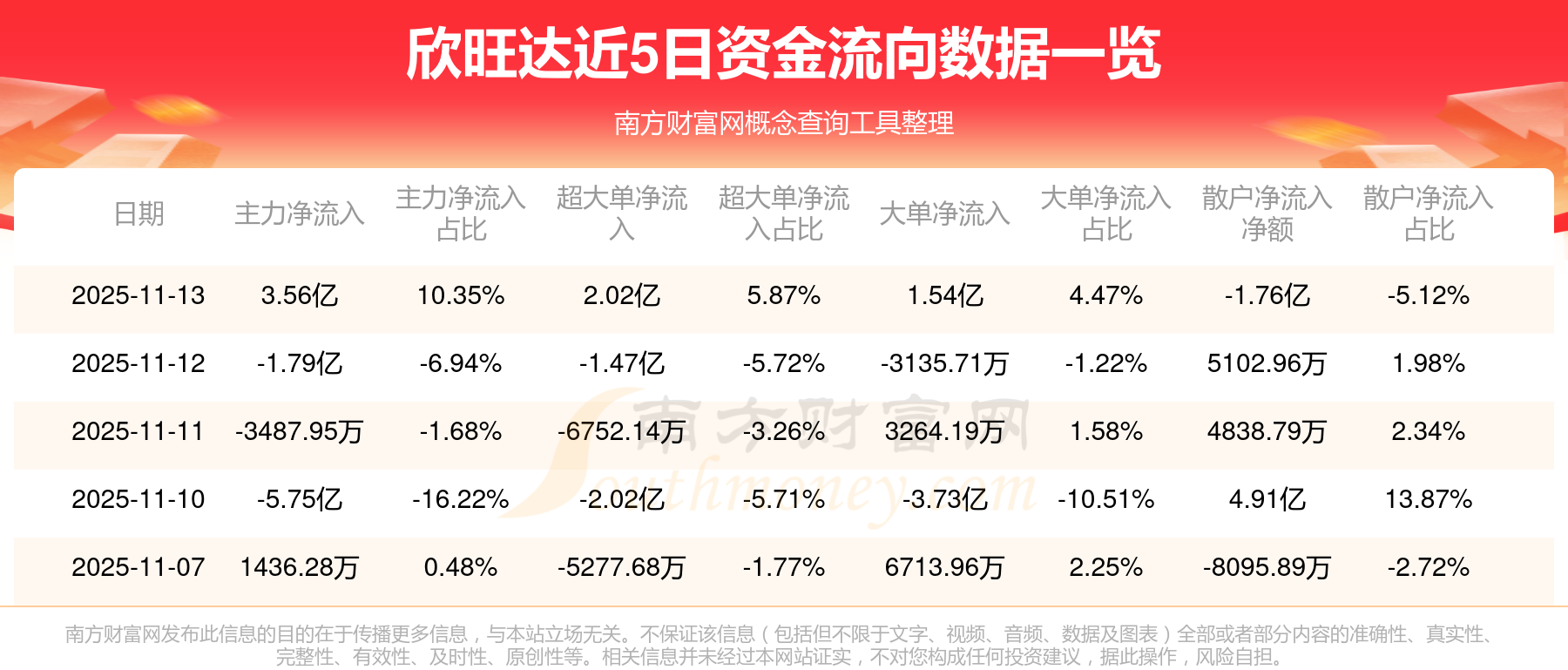 11月13日主力資金凈流入3.56億元,超大單資金凈流入2.02億元,換手率5.96%,成交金額34.4億元。
