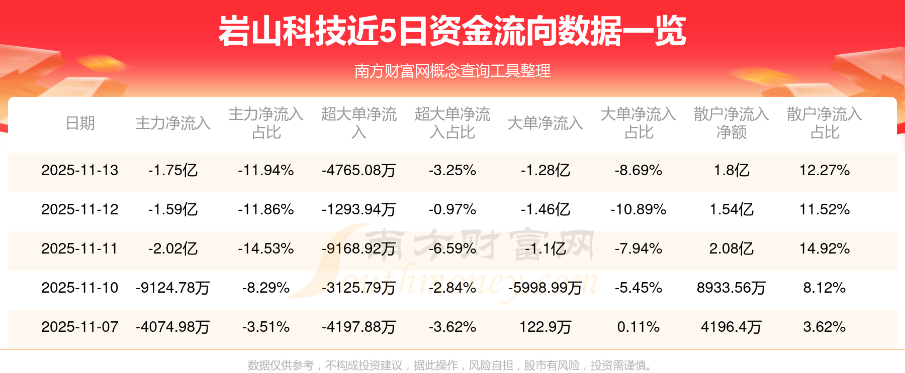 11月13日消息,巖山科技5日內(nèi)股價(jià)下跌4.88%,該股最新報(bào)7.370元漲0.27%,成交14.67億元,換手率3.57%。