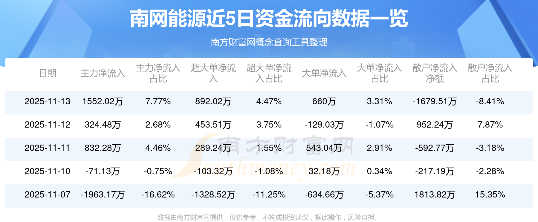 資金流向數(shù)據(jù)方面,11月13日主力資金凈流流入1552.02萬元,超大單資金凈流入892.02萬元,大單資金凈流入660萬元,散戶資金凈流出1679.51萬元。