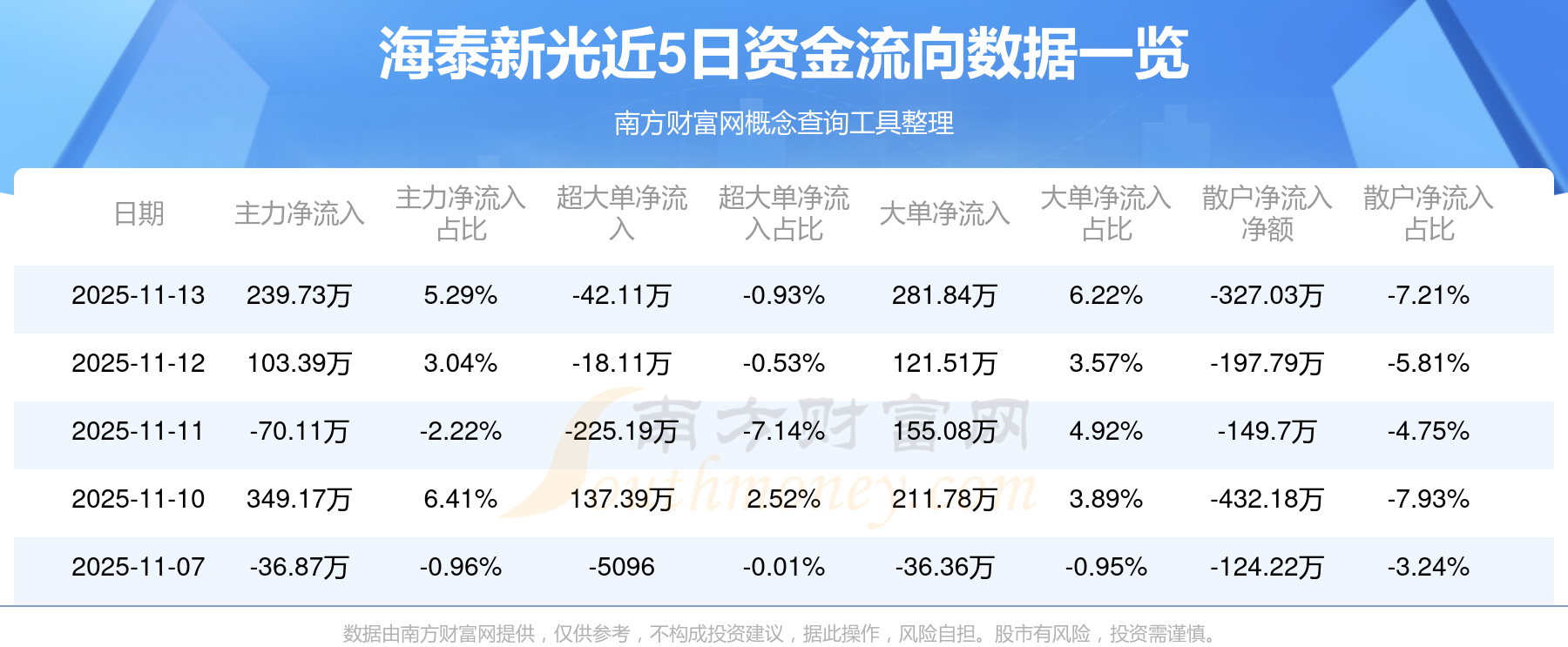近5日資金流向一覽見下表: