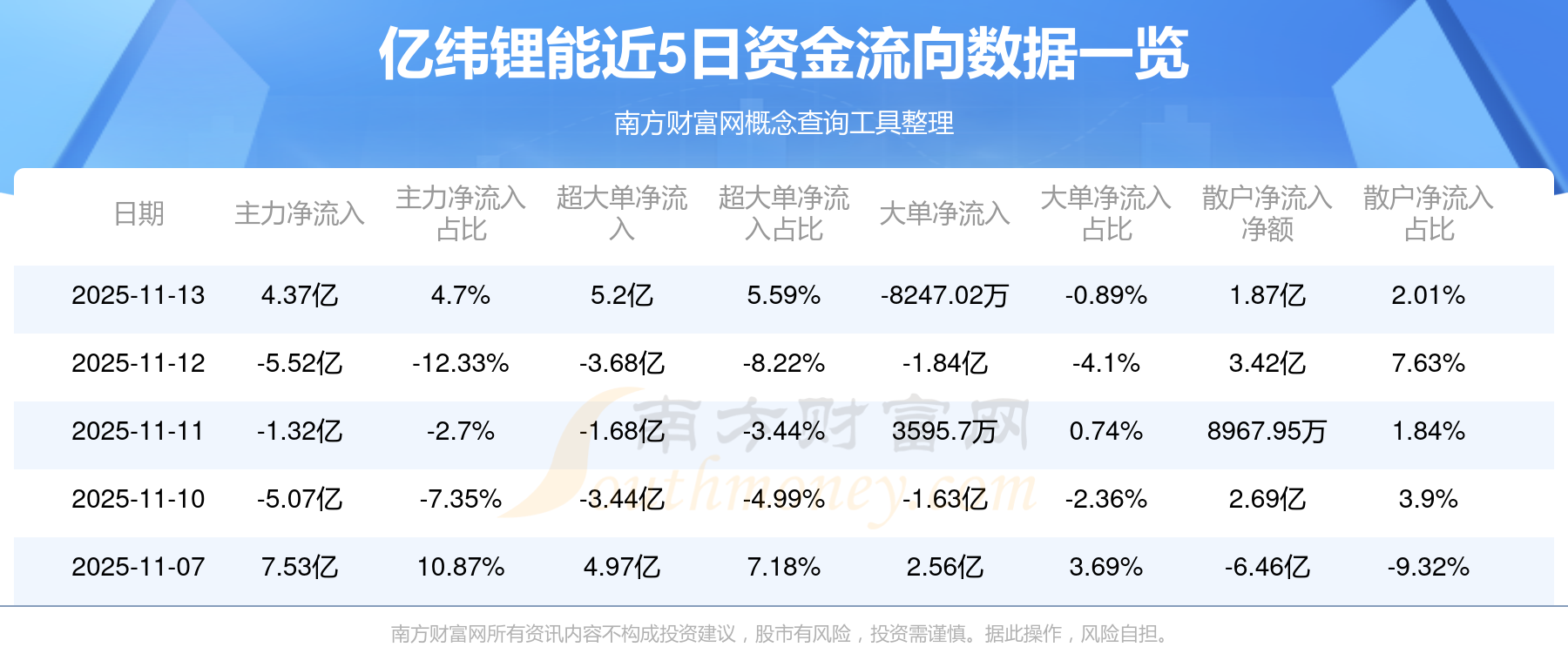 11月13日該股主力資金凈流入4.37億元,超大單資金凈流入5.2億元,大單資金凈流出8247.02萬元,中單資金凈流出6.25億元,散戶資金凈流入1.87億元。