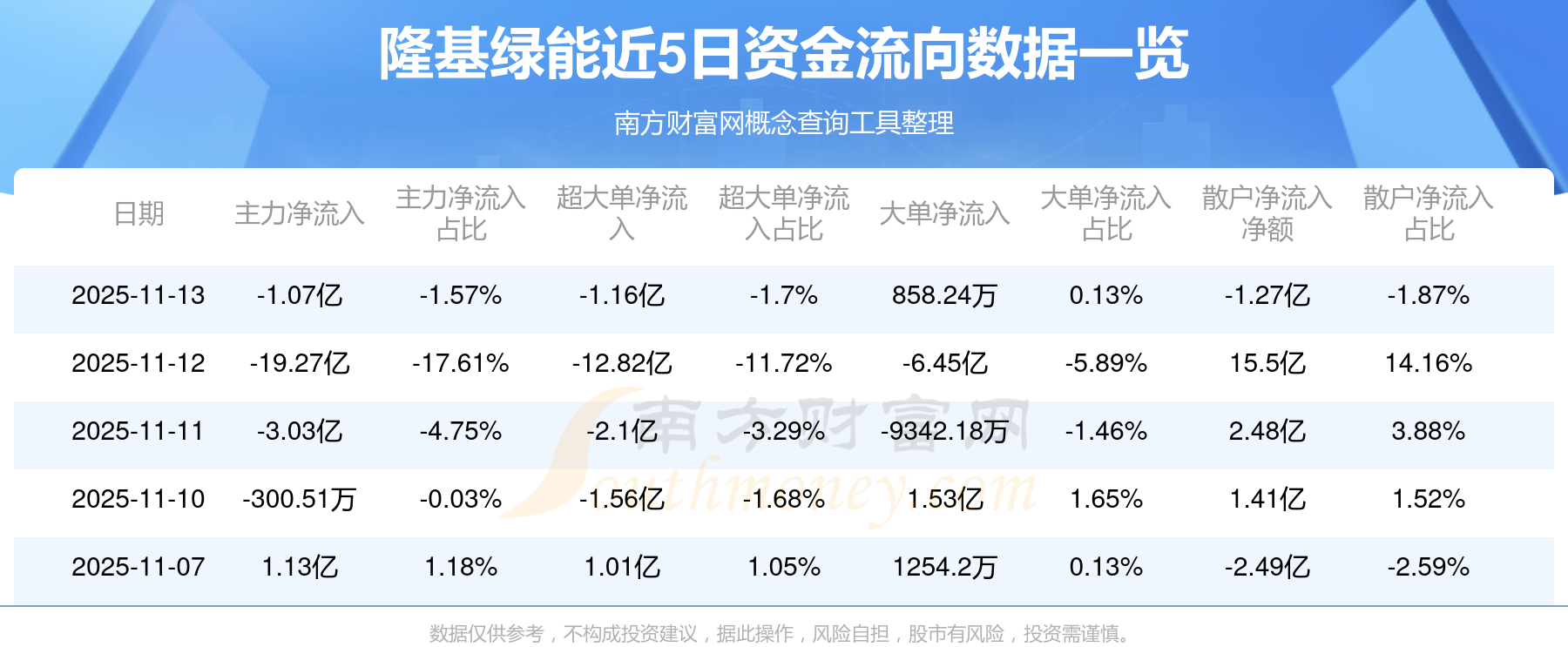 11月13日消息,隆基綠能11月13日主力凈流出1.07億元,超大單凈流出1.16億元,大單凈流入858.24萬(wàn)元,散戶凈流出1.27億元。