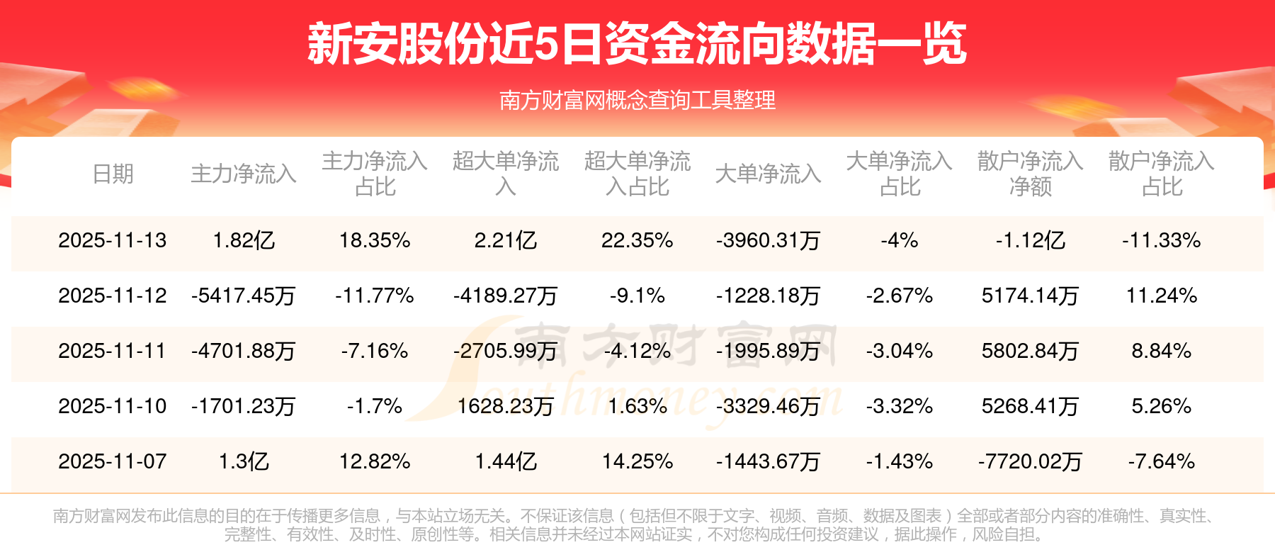 資金流向數(shù)據(jù)方面,11月13日主力資金凈流流入1.82億元,超大單資金凈流入2.21億元,大單資金凈流出3960.31萬(wàn)元,散戶資金凈流出1.12億元。