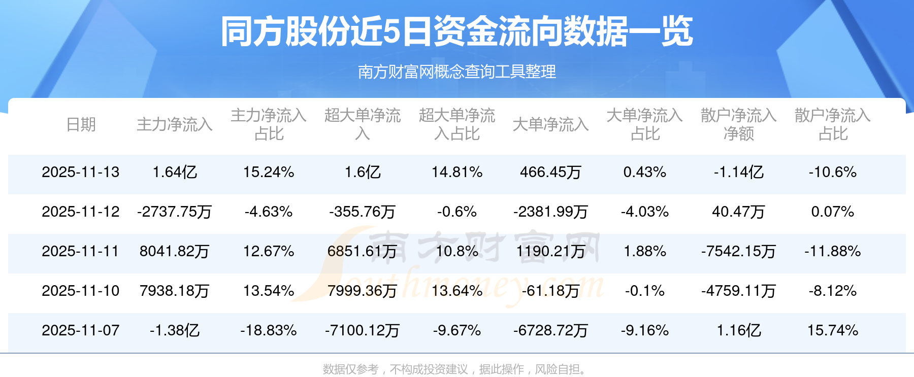 11月13日該股主力資金凈流入1.64億元,超大單資金凈流入1.6億元,大單資金凈流入466.45萬元,中單資金凈流出5004.13萬元,散戶資金凈流出1.14億元。