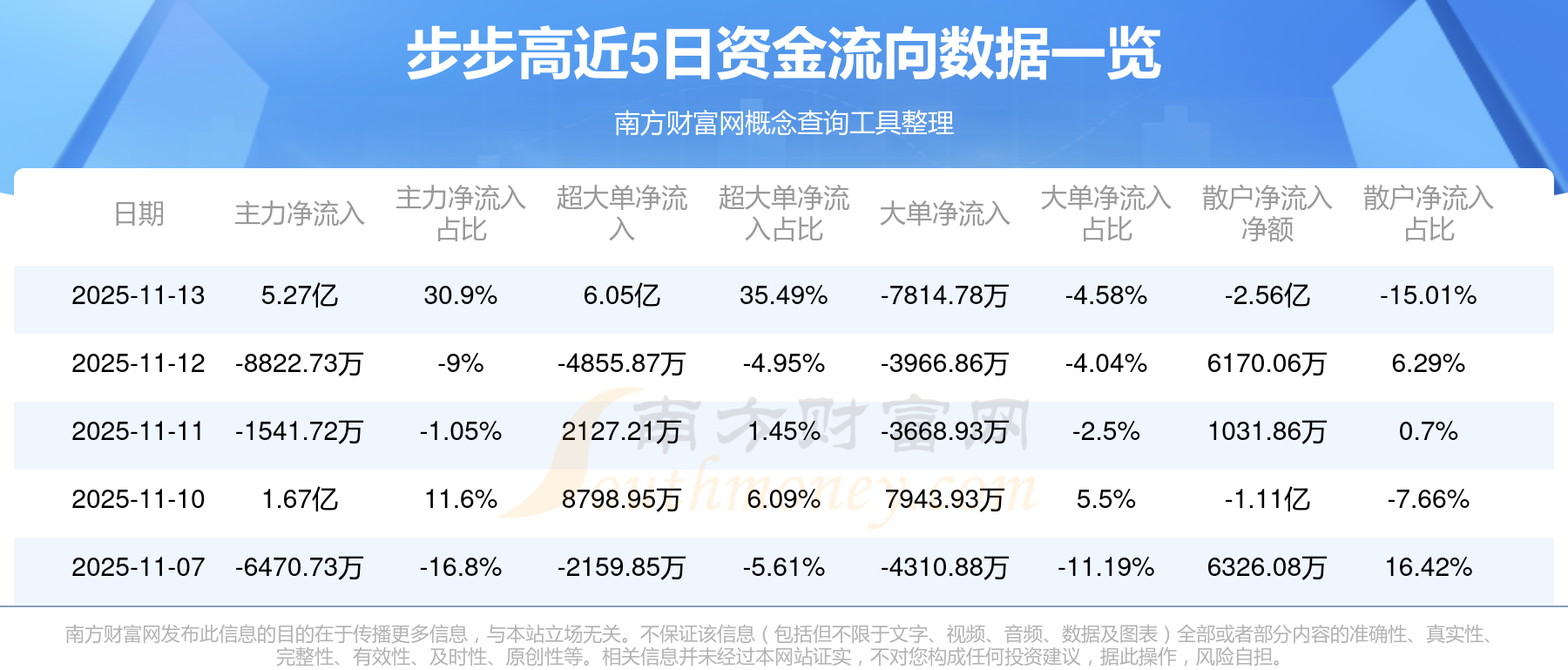 11月13日消息,步步高11月13日主力資金凈流入5.27億元,超大單資金凈流入6.05億元,大單資金凈流出7814.78萬(wàn)元,散戶資金凈流出2.56億元。
