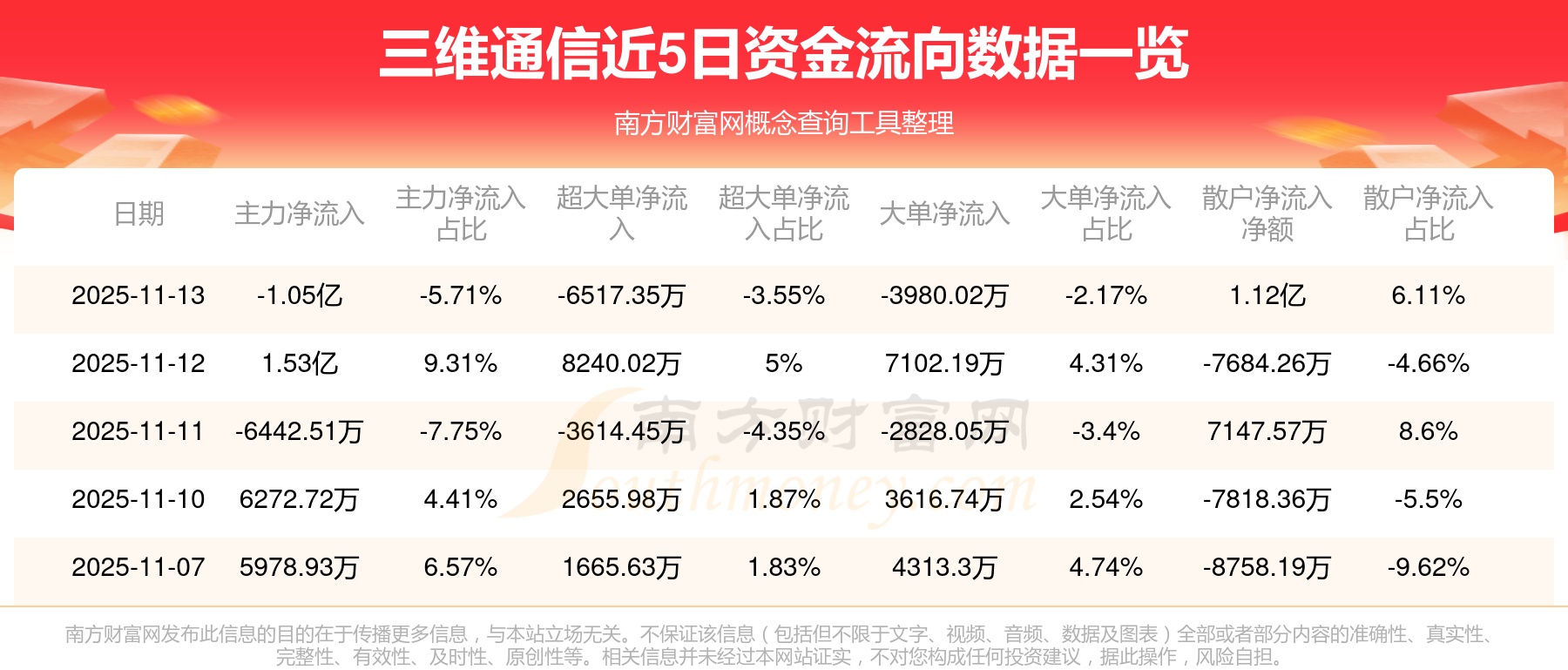 11月13日消息,三維通信資金凈流出1.05億元,超大單資金凈流出6517.35萬元,換手率20.15%,成交金額18.38億元。