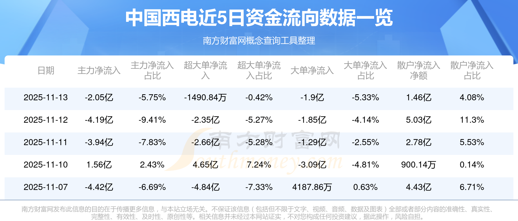11月13日消息,中國西電11月13日主力資金凈流出2.05億元,超大單資金凈流出1490.84萬元,大單資金凈流出1.9億元,散戶資金凈流入1.46億元。