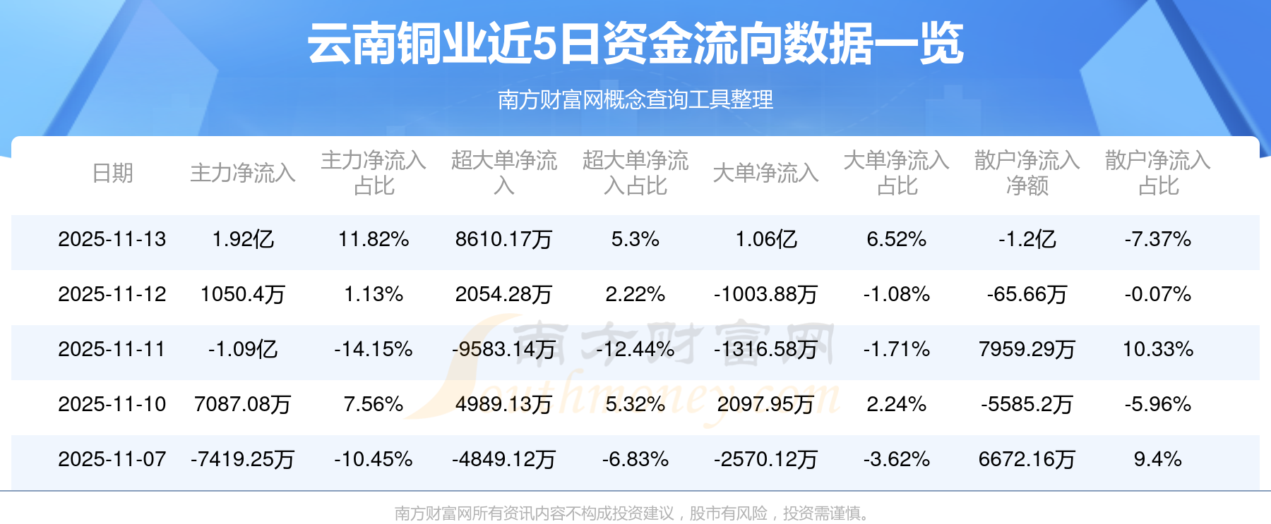 11月13日該股主力凈入1.92億元,其中資金流入方面:超大單凈入2.4億元,大單凈入4.94億元,中單凈入5.02億元,散戶凈入3.67億元;資金流出方面:超大單凈出1.53億元,大單凈出3.88億元,中單凈出5.75億元,散戶凈出4.87億元。